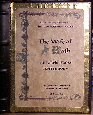 Using a font called Merlin, I created the front cover, duplicating the original figure of the Wife from the Ellesmere Manuscript, except that I have her facing in the opposite direction because she is returning FROM Canterbury.