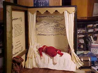 I had originally planned a roombox, but when I found a warped book box on sale I knew it would be perfect for my purposes. (After all, Chaucer's book is several hundred years old!) It took some doing to figure out how to make the base, etc, because of the warping. It was my first experience using one of those boxes. I have another for some future scene, but it's not as deep, and hopefully not as warped.