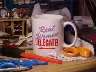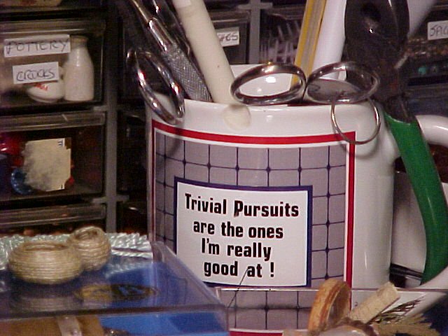 The Real Women cup was a gift from a student many years ago. (I seem to've had every pair of scissors I owned on the work table that day!)