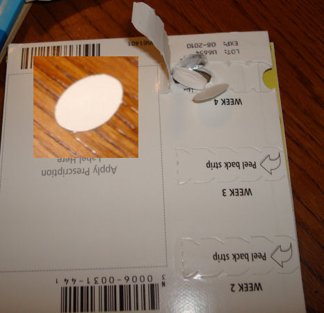 I take a medication once a week, and each time I do, I punch out a little white cardboard oval when I remove the pill.
