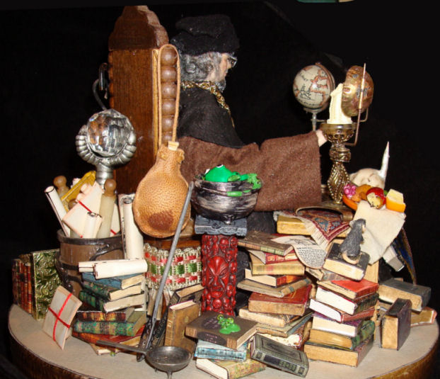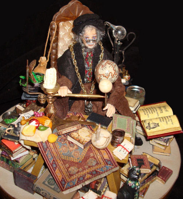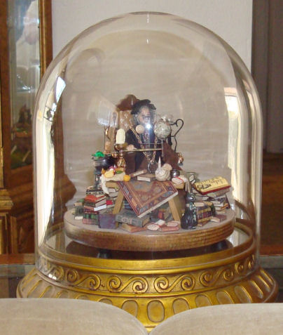 I purchased the wonderful orrery from the late Mel Koplin at the Chicago International in 2010. I am so glad I have one of his pieces. He was a very creative, fun, imaginative and energetic person, and added so much to our lives in the miniatures world. He is greatly missed.