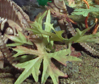 The only other thing I used was a few pieces of bark and this "prehistoric staghorn fern" from the collection of leaves in my stash. I used bits of foam to elevate the base for the two plants.