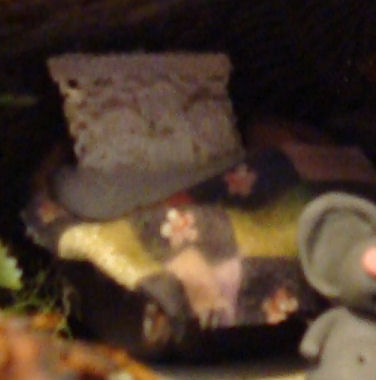 It was left to us to decide what our rocks would become. Some just landscaped with flowers and plants, others made fairy or elf habitats. Mine became a home for three cartoonish country mice (no more realistic mice for me after real mice invaded our pantry one winter). They were made by Beth Giachetti of Arizona.