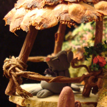 This mouse house is about one-quarter-inch scale, where one quarter inch equals one foot; but, then again, mice aren't particular about mixing scales! The closeups to show details also make them appear larger than they really are in real life.