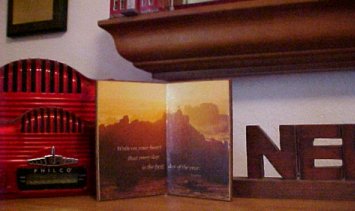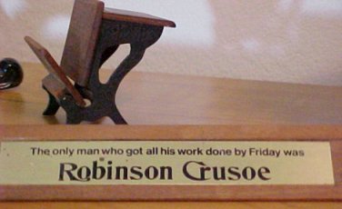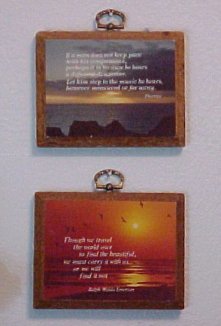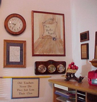 Hanging on the wall to the right of the display shelf are two little plaques which were gifts from my teaching colleague Fernie, who passed away in 2001.