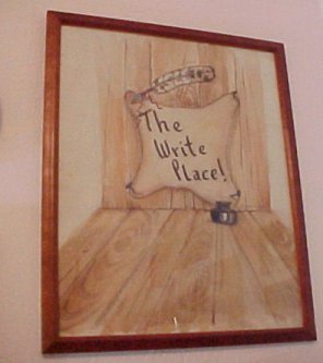 The watercolor was a gift from the art teacher when I opened The Write Place, my writing and tutoring center. If you look closely, you can see that the pen's feathers spell Ysleta, which was the name of my high school. Some of my students were members of the Ysleta Pueblo, and our mascot was the Indian. This painting used to hang on the wall of my writing center.