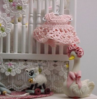 She thought at first she might be able to wear that little pink crocheted dress but it was a wee bit too large!