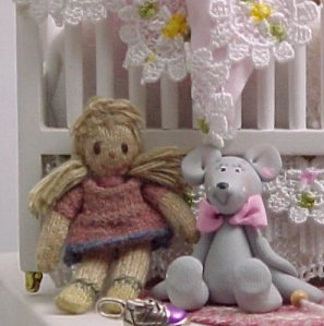 This is Annabel in a 2 inch scale rocking chair. She is a sculpted cloth doll over wire.