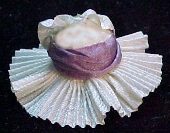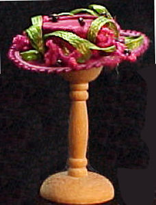 That mauve silk ribbon was part of the trim on one of my old real-life hats. When I first learned in the 60s that I had a photosensitivity I decided that if I had to wear a hat, I might as well enjoy myself. For several years I accumulated vintage hats with intriguing handmade flowers and interesting band treatments. I still have many of the wonderful trims and flowers that were designed to be added to existing hats. I have duplicated several of those designs for my miniature hats.