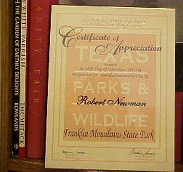 of Appreciation from Texas Parks & Wildlife was just