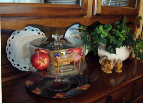 My son gave me a clear glass footed cake plate for Christmas when he was a teenager. Besides being a wonderful container for delectable desserts, it is also handy for displaying seasonal cooking settings.