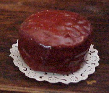 The jar is a bead; its cap is a tiny leaf pierced earring. Later, I decided to put the jar in the hutch when I realized I had no place for Sophie to set the cake!