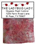 As I sank into the soft cushions, she smiled. "I am known in the business world as The Ladybug Lady. Yes, my friend Howard and I (I'll tell you about Howard another time) ship all over the place. Honey, you wouldn't believe how satisfying it is to box up those little darlings and send them out to all the lovely rose gardens. Would you believe an adult ladybug can eat up to 75 aphids a day, and up to 5,000 in the course of its little life? See that carton over there which is about ready to go out? Now there's a customer who uses LOTS of ladybugs!" She pulled a packet from the open box.