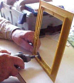 And, sure enough, dear husband obligingly used the Dremel cutting blade to remove it for me, and that took care of the problem. (After all that work, I remembered that Joann doesn't use a frame for the top; she usually has a piece of glass cut to fit. Oh well.)