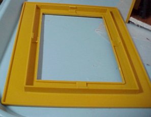 This is the frame that was to form the top of the box, but its inner rim wouldn't permit it to lie flat.