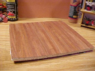 Even so, the wood strip floor, made from stained coffee stirrers, showed some warping when it dried. I just took it in my hands and sort of cracked it into shape again.