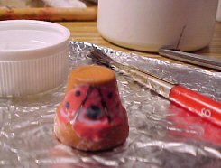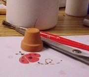 Here I was working on a ladybug flowerpot project. I cut the design from a piece of notepaper and glued it to the pot.