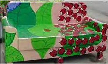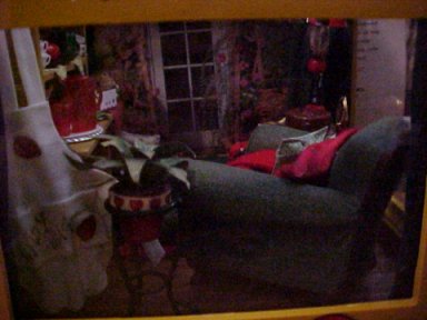 She interrupted, motioning me through the doorway, "Oh, hello, dear. I had forgotten that you were coming today! Now I remember why that chocolate cake is in the refrigerator! Come on in," she said warmly, the sleeves of her diaphanous long red dress floating around her as she ushered me into her little house. "I guess I forgot about you because I am so anxious to get rid of that damn thing out front, and was just hoping you were someone wanting to take it away." She squinted at me, "I don't suppose you would want a sofa for free, Wanna?"