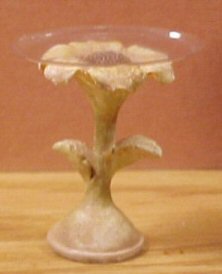 I bought this sunflower birdbath (or bird feeder) at Michaels. Its glass top is a piece of plastic from some kind of packaging. I thought I would use it as a table, but there was no room, so it is back in the stash for some later project.