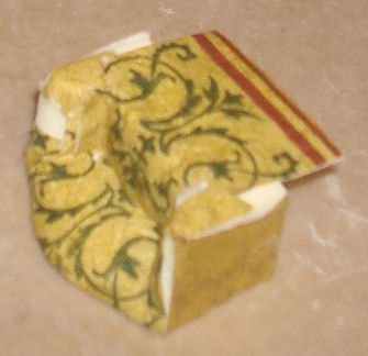 Most of the sections of that napkin are more pink toned, but by the time I got through with this sofa, it took on a much more yellowish beighish look as the different edges of the design were pressed into place. And it hardly resembles the original napkin at all. Who knew?