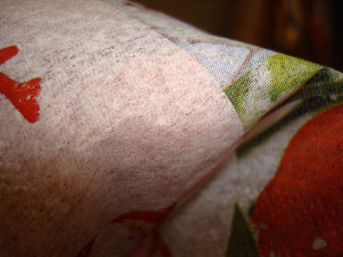 I let it dry thoroughly and then cut out my little cusHion. It is cute as can be, but as it turned out, it appears too old-fashioned to work with this particular piece of furniture.
