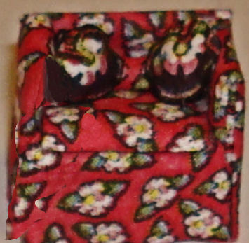 Here is the 5x5 cocktail napkin which I used to upholster my first resin sofa. (I wanted to use that oval floral for a bed but it was a bit too narrow. I may go back now and see if I can glue it onto a larger section of the blue and try again.)