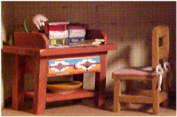 And sure enough, when I needed furniture for the little southwest setting for my Pigness Protection Program story, I figured with a little work these rugged little pieces might be suitable.