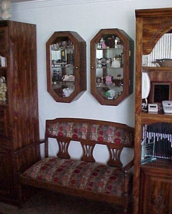 My husband refurbished the woodwork and we had the chair seats and backs upholstered in cut velvet. One went to my sister (unfortunately it was destroyed when her apartment burned) and I recently gave the other one to my daughter, who has it in her living room now.