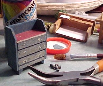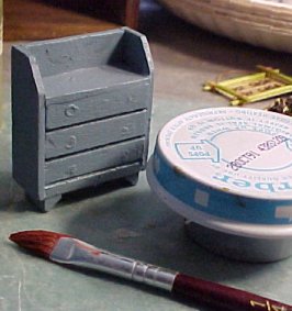 2. One of the biggest problems with inexpensive furniture is that the edges of drawers and doors or inexpensive chests are way too thick and rough, and way too sharp, as well. First, gently round off the sharp corners and smooth the edges and then try the painting technique with them. I have even painted the edges of some drawers and doors black, as well as the interiors and lids of trunks. Sometimes just putting a dirty water wash over lighter-painted chunky furniture helps, too. Maybe I'm only fooling myself, but I find that it does make a difference for me.
