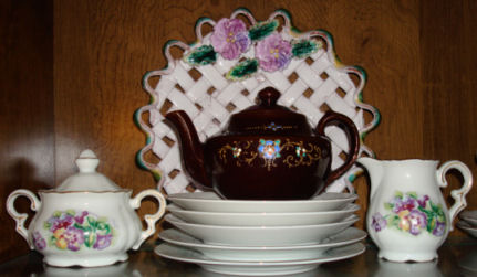 March, 2010: The Tetley Teapot setting is now complete and you can see a display created for the family story here. And one of these days you can read about my sister Ann and her teapot collection.
